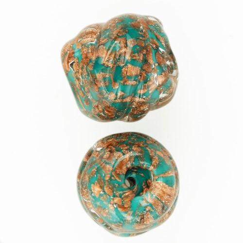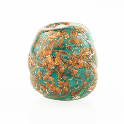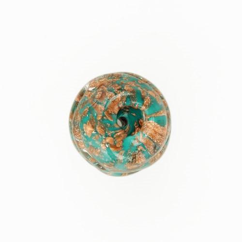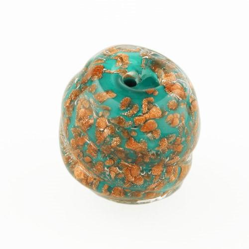 Perla di Murano melone Sommerso Ø18. Vetro verde, con avventurina. Foro passante.