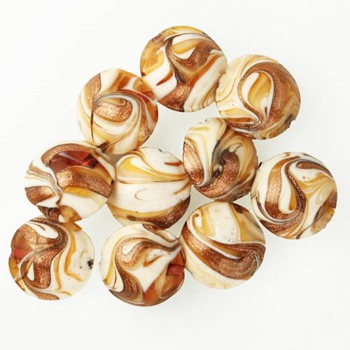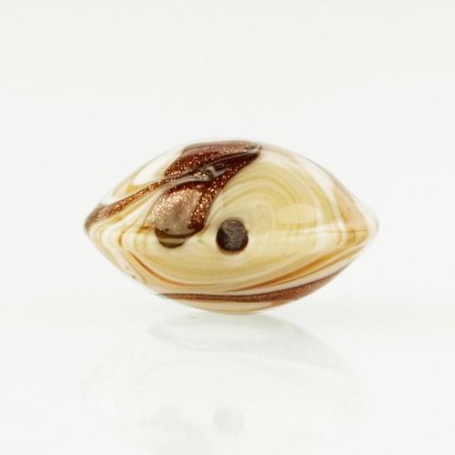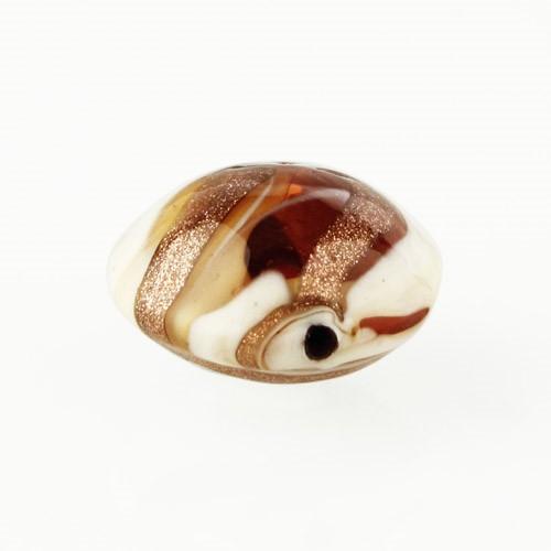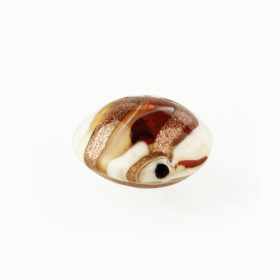 Perla di Murano schissa Fenicio Ø14. Vetro ambra, avorio, topazio e avventurina. Foro passante.