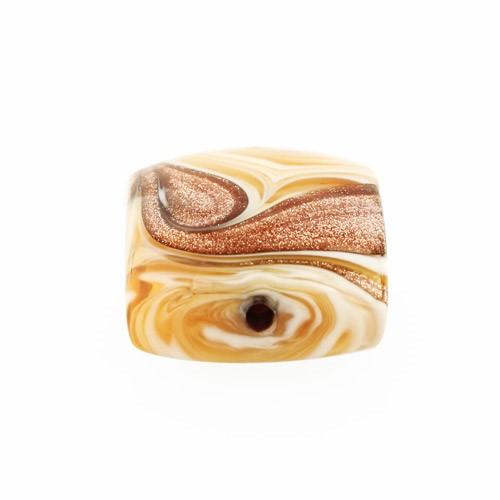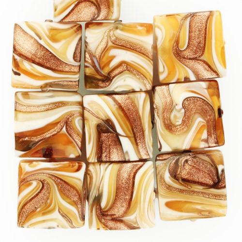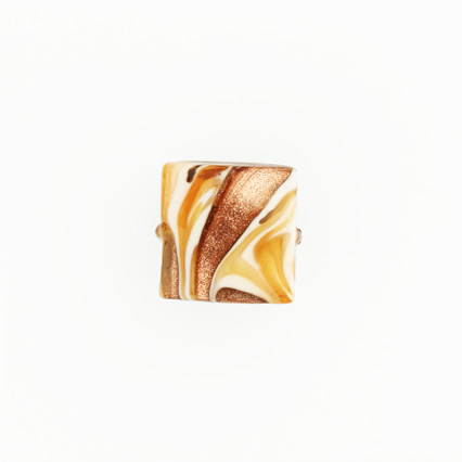 Perla di Murano schissa quadrata Fenicio Ø14. Vetro ambra, avorio, topazio e avventurina. Foro passante.