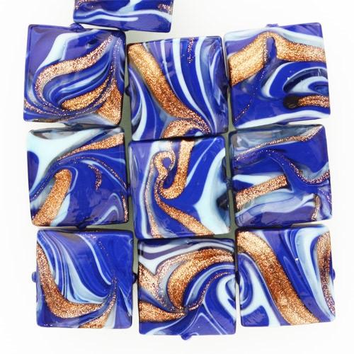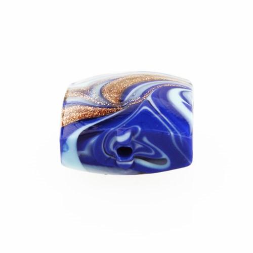 Perle in vetro artistico di Murano fatto a mano. Forma curva, diametro Ø14 in vetro  blu lapis, azzurro e avventurina che impreziosisce il materiale. La decorazione presenta un tripudio di colori che si intersecano tra loro, ottenuti tramite una lavorazione manuale del vetro. Con foro passante,ideale per la creazione di bigiotteria di vario tipo, quali: bracciali, collane, orecchini preziosi e originali. I colori sono vivaci e la trama è estremamente raffinata. Le caratteristiche di queste particolari perle, derivano da una conoscenza del vetro protrattasi per anni e giunta sino a noi. Contribuisci a rendere unica la nostra tradizione. Ordina subito i tuoi pezzi.