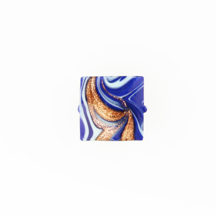 Perla di Murano schissa Fenicio Ø14. Vetro blu lapis, azzurro e avventurina. Foro passante.