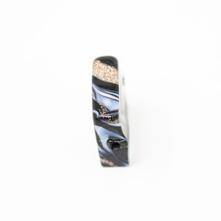 Perla di Murano schissa Fenicio Ø14. Vetro nero e avventurina. Foro passante.