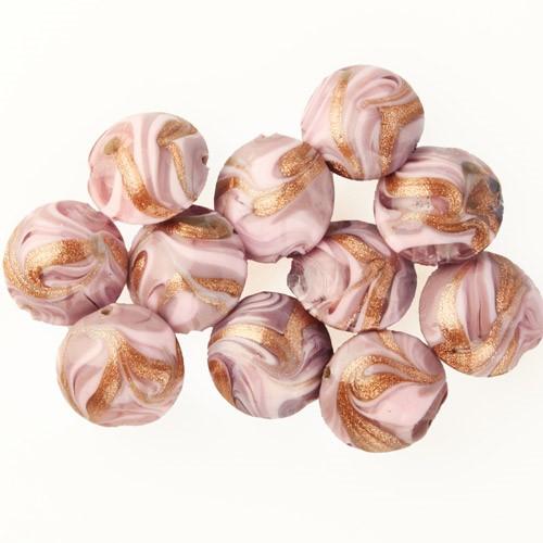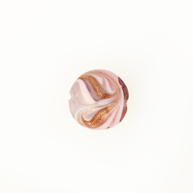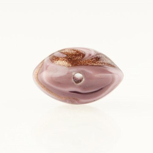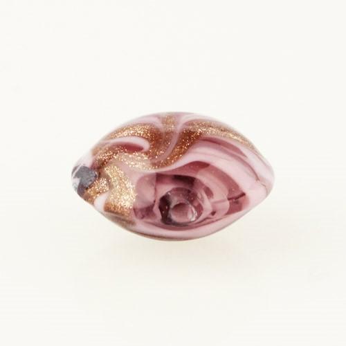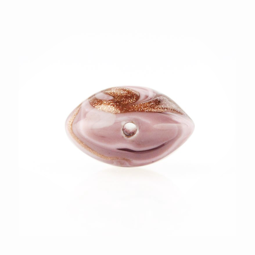 Perla di Murano schissa Fenicio Ø14. Vetro rosa e avventurina. Foro passante.