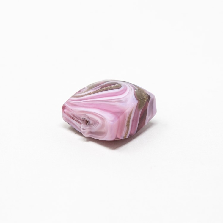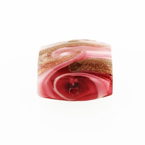 Perla di Murano schissa Fenicio Ø14. Vetro rubino e avventurina. Foro passante.