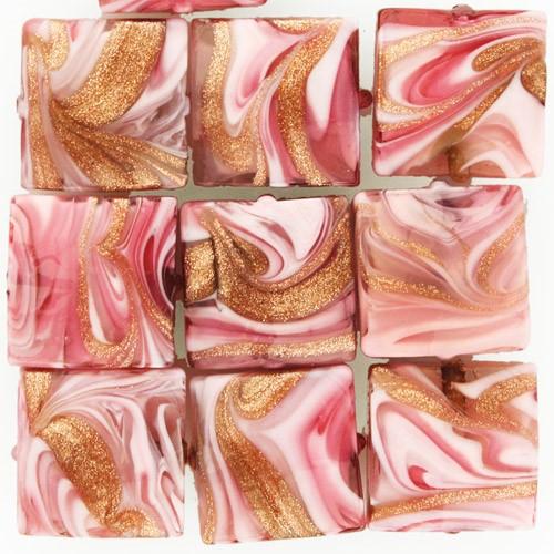 Vetrocristallo propone, le nuove perle veneziane di forma quadrata [14x14 mm], caratteristica derivante dal nome gergale veneziano "Schissa". La trama è costituita da fasce color rubino intrecciate al'avventurina preziosa, che permette al gioiello di brillare. Collane, bracciali e bigiotteria d'ogni tipo, dedicata ad una serata elegante o ad un'originale idea regalo.