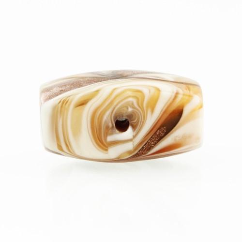 Perla di Murano schissa Fenicio Ø18. Vetro ambra, avorio, topazio e avventurina. Foro passante.