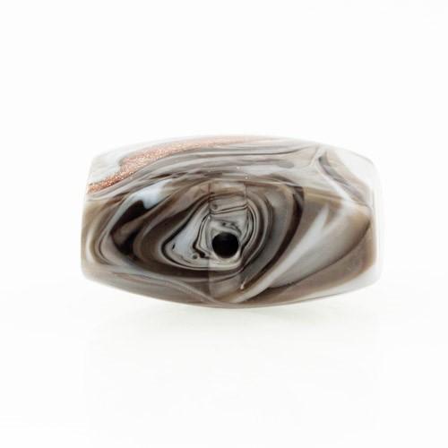 Perla di Murano schissa Fenicio Ø18. Vetro grigio, bianco e avventurina. Foro passante.