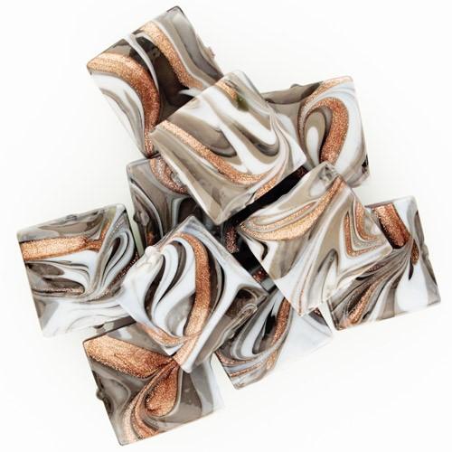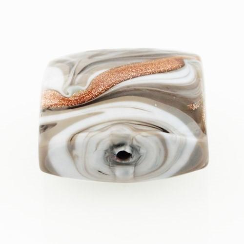 Queste perle veneziane "made in Italy" di misura Ø18 mm, in vetro grigio, bianco e avventurina. Perla quadrata dal caratteristico disegno composto da una mescolanza di forme e colori brillanti e detto "Fenicio". Le perle son frutto di un'attenta lavorazione ottenuta da più stratificazioni in vetro, che ne determinano la preziosità. L'artigianalità è alla base della creazione del prodotto lavorato a lume. Crea gioielli unici e vivaci, scegli le perle più adatte a te.