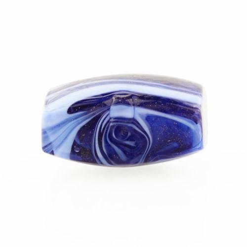Perla di Murano schissa Fenicio Ø18. Vetro pervinca, lapis e avventurina blu. Foro passante.