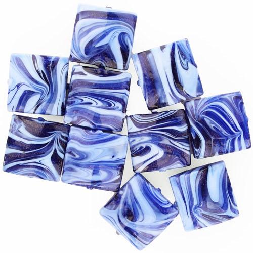 Vetrocristallo propone, le nuove perle veneziane lavorate a lume, di forma quadrata e misura [Ø18x18 mm] in vetro pervinca, lapis e avventurina blu, un minerale simile al quarzo. I colori sono tersi e vivaci, tipici di questo disegno particolare, detto "Fenicio". Collane, bijoux, pendenti, ce ne sono per tutti i gusti, l'unica caratteristica che unifica tutte queste perle è la loro qualità. Il loro pregio è dato dall'accurata lavorazione del Maestro che le ha forgiate. Il vetro veneziano è sinonimo di tradizione, crea il tuo gioiello d'alta bigiotteria come più ti piace.