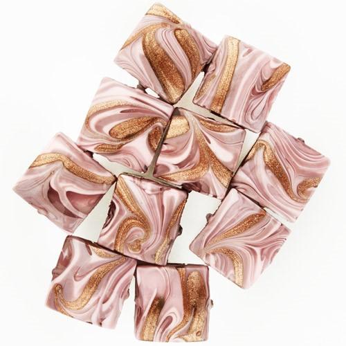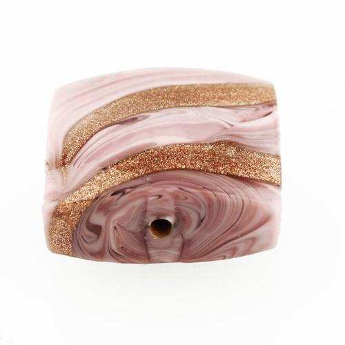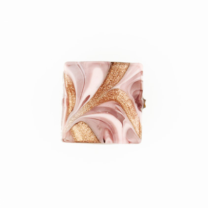 Perla di Murano "made in Venice", di forma quadrata [Ø18x18 mm] in vetro rosa e avventurina, con foro passante. La particolare decorazione detta “Fenicio” dona movimento e vivacità al colore, aspetto tipico del vetro artistico veneziano. La sua forma permette di ottenere diversi effetti, ottenendo oggetti d'alta bigiotteria artigianale. Non è solo un hobby, ma un'attività propria della nostra tradizione.