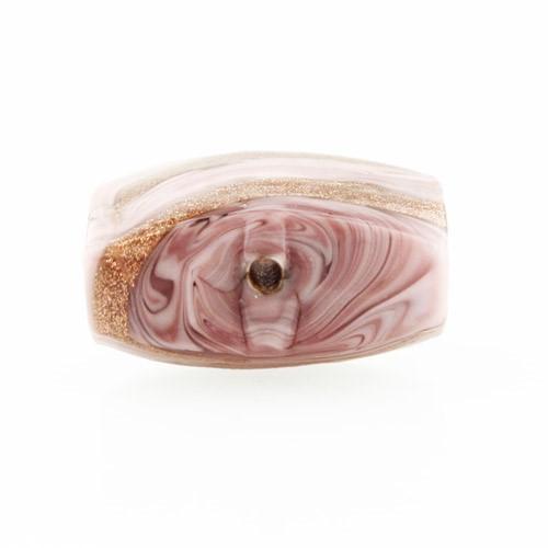 Perla di Murano schissa Fenicio Ø18. Vetro rosa e avventurina. Foro passante.