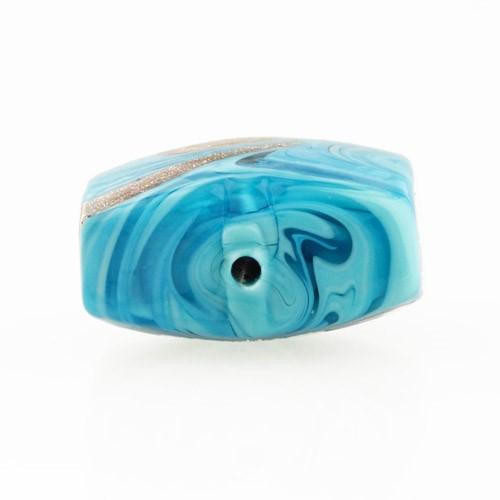 Perla di Murano schissa Fenicio Ø18. Vetro turchese e avventurina. Foro passante.
