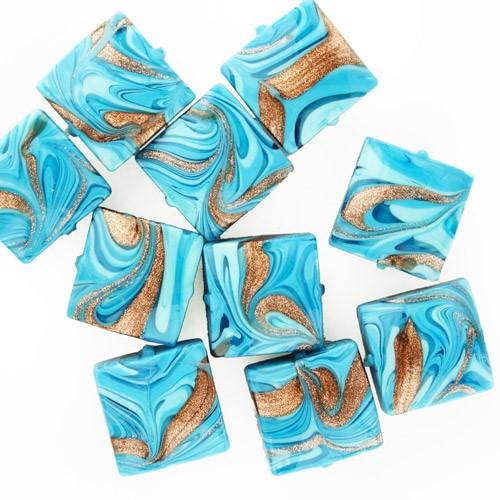 Perla veneziana caratterizzata da varie gamme cromatiche. Questo prodotto ve lo proponiamo con vetro turchese e avventurina. Misure [18x18 Ø] e forma quadrata con foro passante per creazione di gioielli. Prodotto in Italia e lavorato a mano da sapienti Maestri vetrai. Perle in vetro di Murano di alta qualità, fatte a lume secondo la tradizione di questi antichi gioielli dell'arte veneziana delle perle. Un mix di colore e forme ideale per la creazione di collane artigianali e il fai da te creativo.
