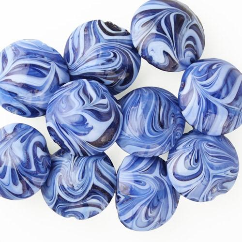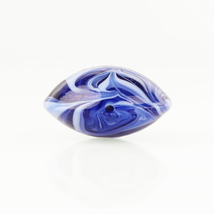 Perla in vetro colorato lavorate a mano, color pervinca, lapis e avventurina blu, di forma schiacciata, munita di foro passante. Perle in vetro di Murano di alta qualità, fatte a lume dallo stile unico e dall'inestimabile valore artistico. La decorazione presenta il caratteristico disegno a fasce colorate detto “Fenicio”. Le perle son frutto di un'attenta lavorazione, ottenuta da più stratificazioni in vetro, che ne determinano la preziosità. Adatto per la creazione di bijoux, collier e pendenti. Vetrocristallo ti offre una vasta scelta grazie alle molte varianti di perle in vetro. Approfitta della nostra vendita online di perle, e dai sfogo alla creatività.