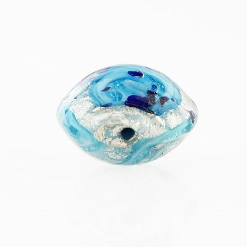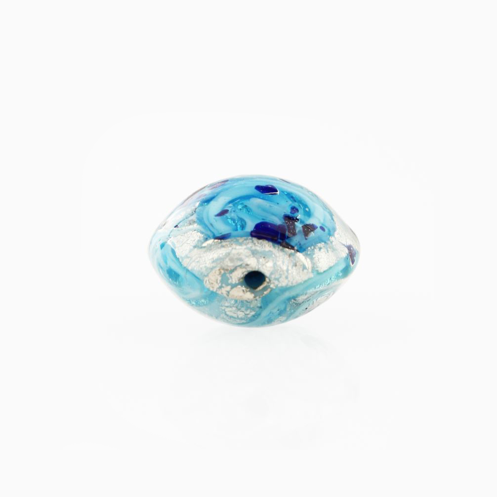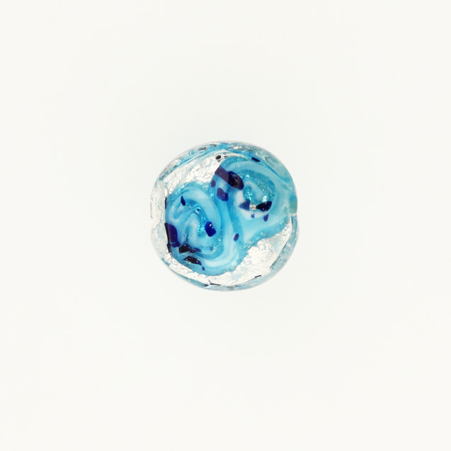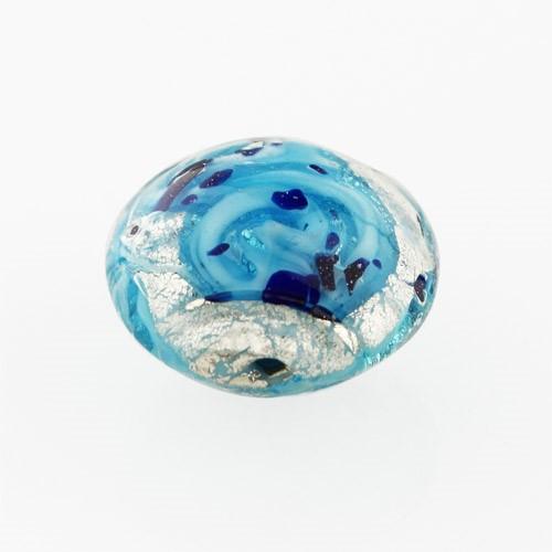 Perla di Murano schissa Medusa Ø14. Vetro turchese, foglia argento e avventurina. Foro passante.