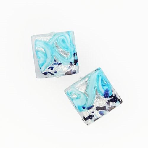 Qui vi presentiamo le perle di Murano in vetro  turchese, foglia argento e avventurina; di forma quadrata, dalla complessa lavorazione a lume. La loro forma Ø14x14 mm è ottenuta tramite un'accurata lavorazione manuale, ed è munita di foro passante.Le perle a lume sono oggetti di elevatissimo prestigio per la tradizione muranese. La decorazione esprime tutta l' autenticità dell'oggetto: solo la mano del Maestro può conferire il tipico disegno a spirale di questa categoria. Le perle le potete trovare sfuse e a buon prezzo. Richiedete la quantità e date spazio alla vostra inventiva.