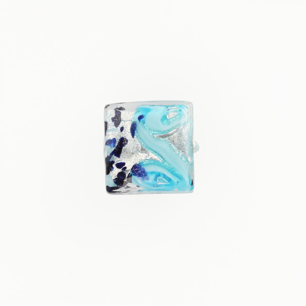 Perla di Murano quadrata Medusa Ø14. Vetro turchese, foglia argento e avventurina. Foro passante.