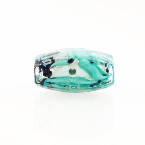 Perla di Murano quadrata Medusa Ø18. Vetro verde marino, foglia argento e avventurina blu. Foro passante.