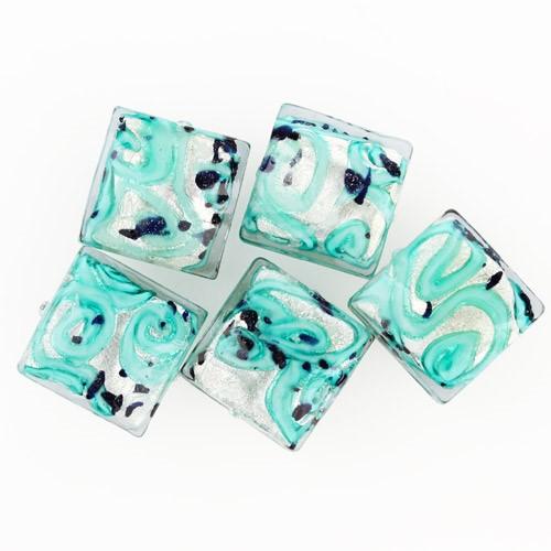 Le perle in vetro qui presentate sono tutte prodotte in Italia, hanno forma quadrata [Ø 18x18 mm] color verde marino, foglia argento e avventurina blu. Ideali per la creazione di gioielli di estrema raffinatezza e originalità. Dall'inestimabile valore artistico e dai colori cangianti e vistosi, tipici della lavorazione della così detta perla "Medusa". Pratici per un'idea regalo dal tocco personale e appropriati per una serata elegante. Scopri tutte le varianti, rigorosamente made in Venice.