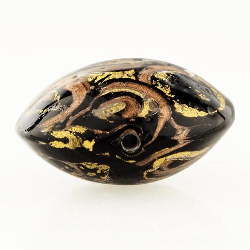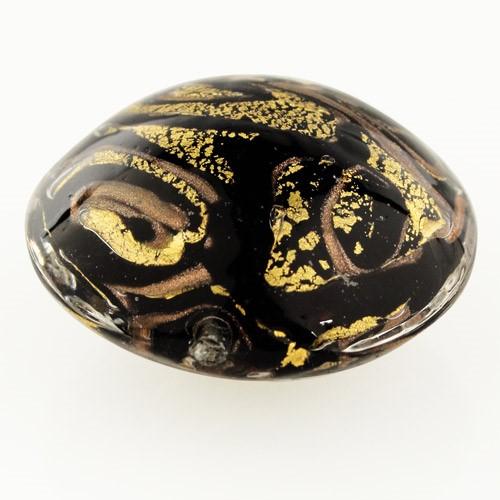 Perla di Murano schissa Medusa Ø30. Vetro nero, foglia oro con avventurina. Foro passante.
