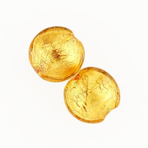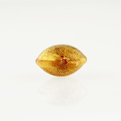 Perla di Murano schissa Sommersa Ø14. Vetro ambra e foglia oro. Foro passante.