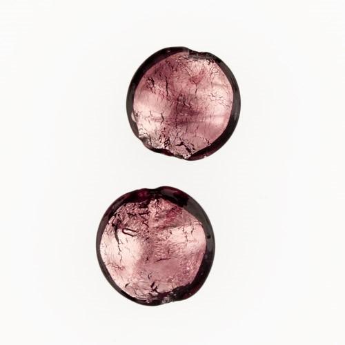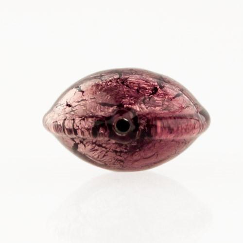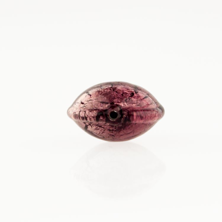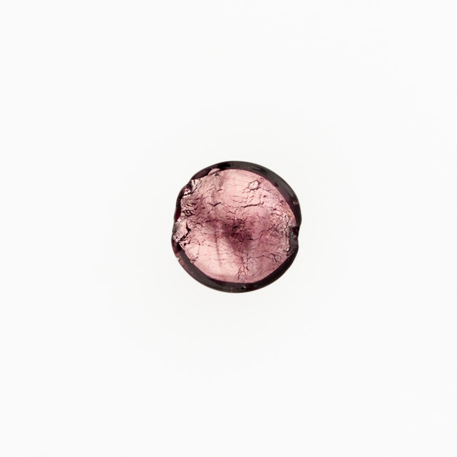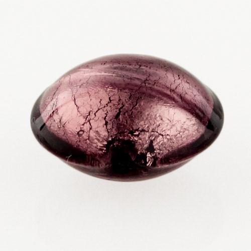 Perla di Murano schissa Sommersa Ø14. Vetro ametista e foglia argento. Foro passante.