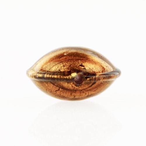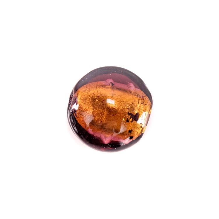 Perla di Murano schissa Sommersa Ø14. Vetro ametista e foglia oro. Foro passante.