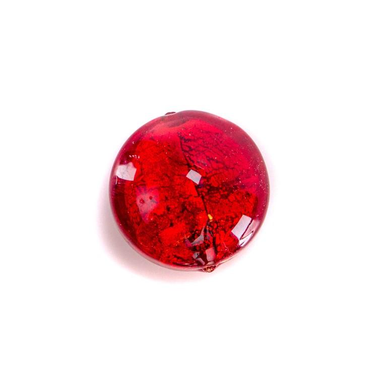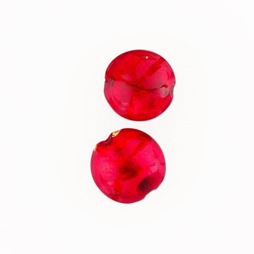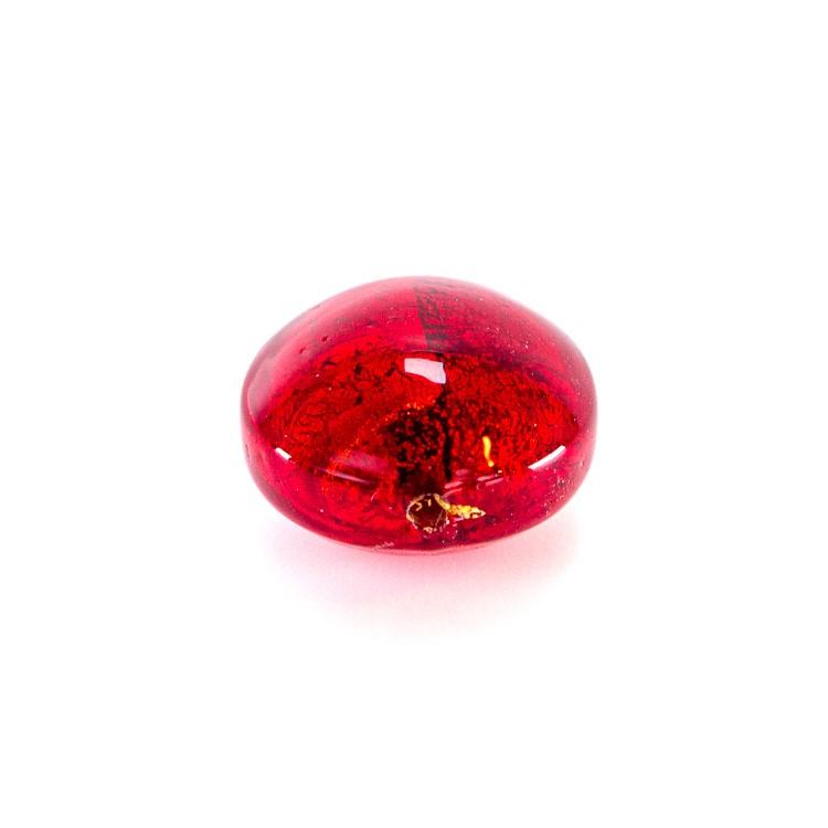 Perla di Murano schissa Sommersa Ø14. Vetro rosso e foglia oro. Foro passante.