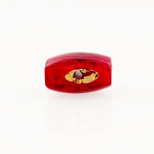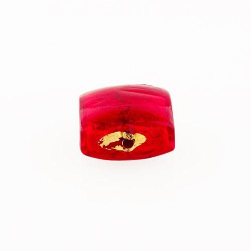 Perla di Murano schissa quadrata Ø14. Vetro sommerso rosso, foglia oro. Foro passante.