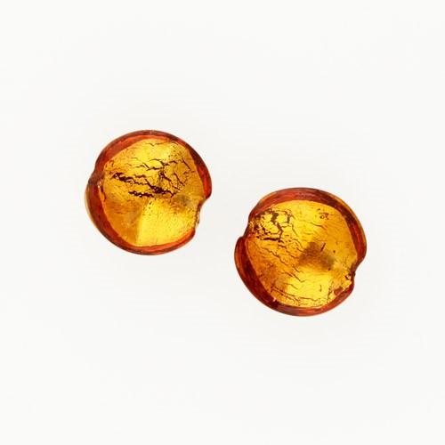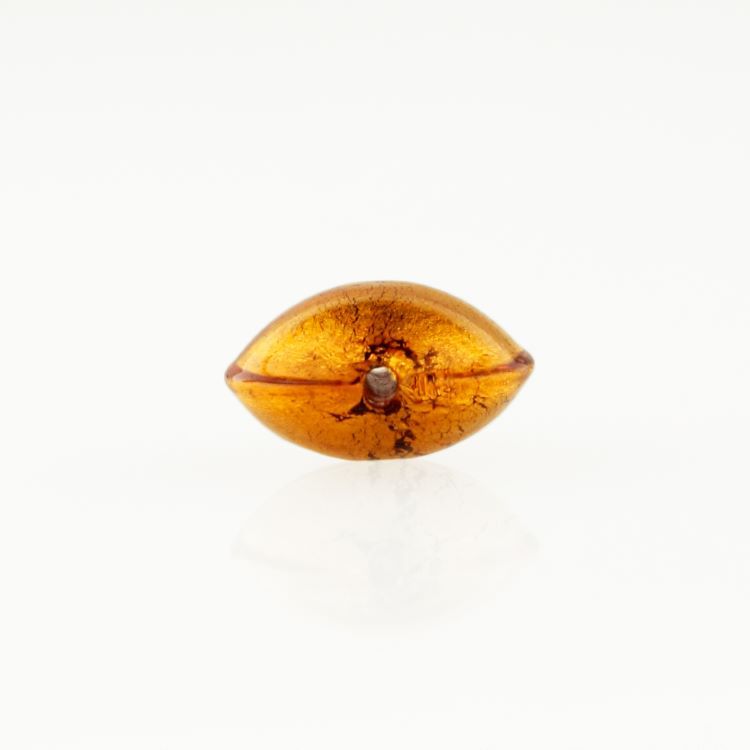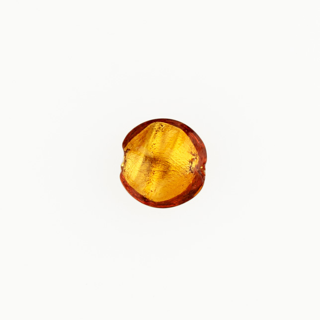 Perla di Murano schissa Sommersa Ø14. Vetro topazio e foglia oro. Foro passante.