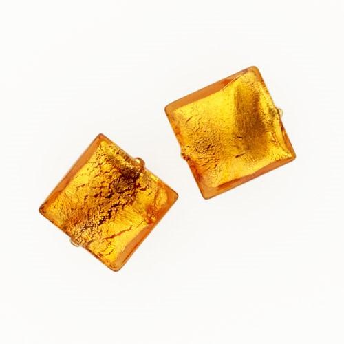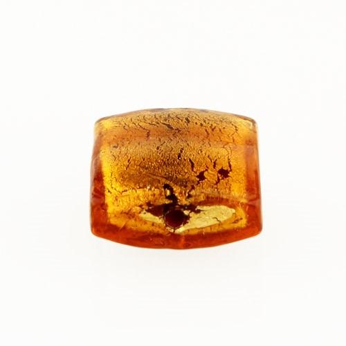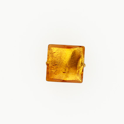Perla di Murano schissa quadrata Ø14. Vetro sommerso topazio, foglia oro. Foro passante.