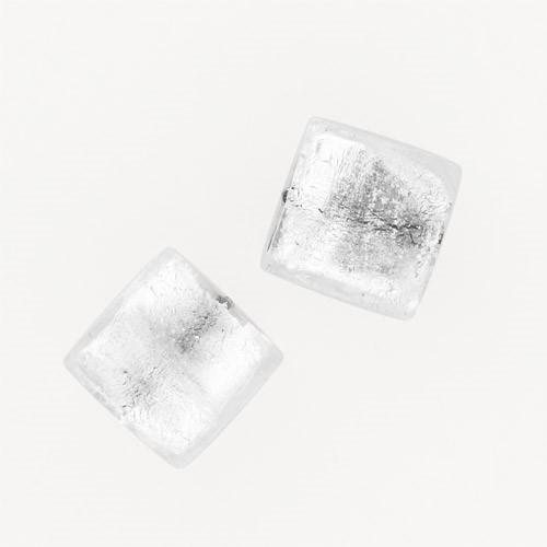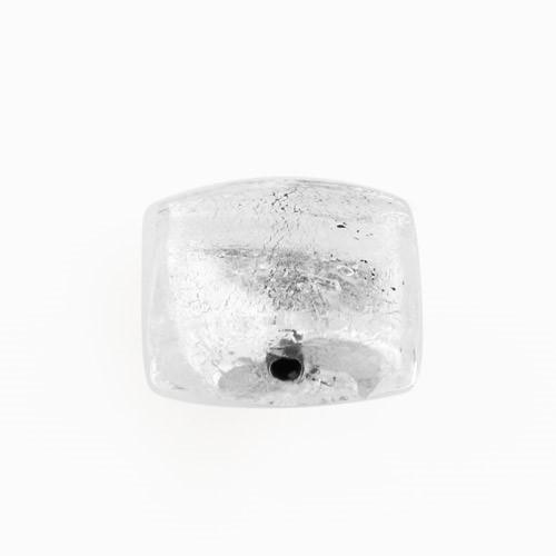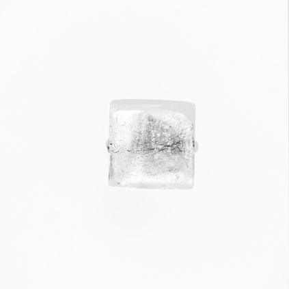 Perla di Murano schissa quadrata Ø14. Vetro sommerso trasparente, foglia argento. Foro passante.