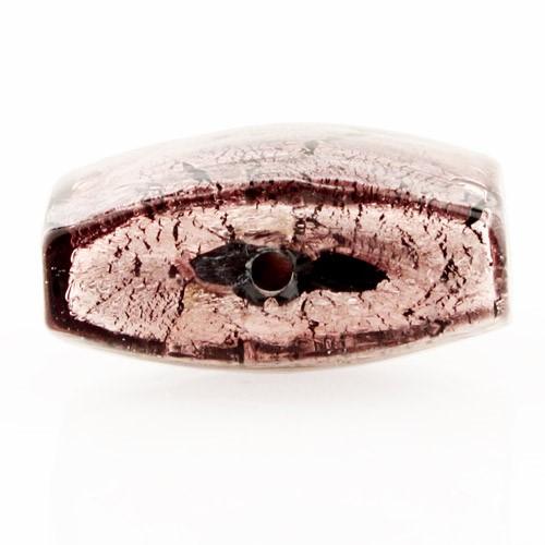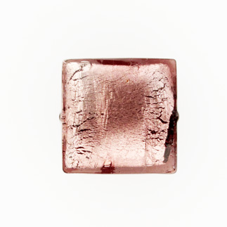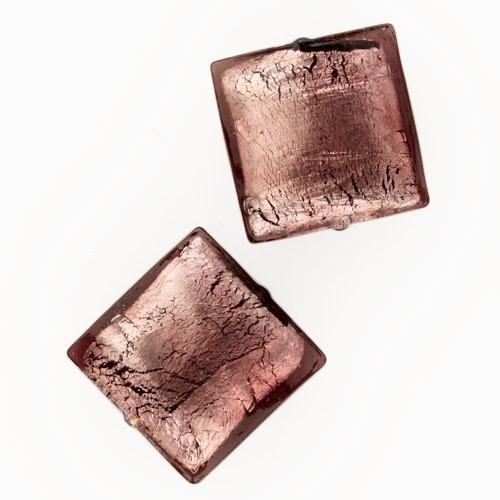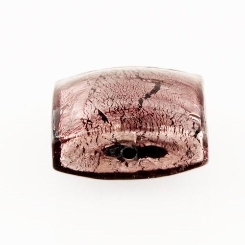 Perla di Murano schissa quadrata Ø18. Vetro sommerso ametista, foglia argento. Foro passante.