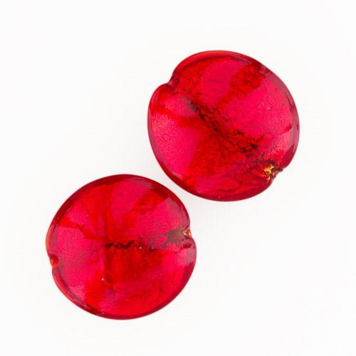 Perla di Murano schissa Sommersa Ø22. Vetro rosso, foglia oro. Foro passante.