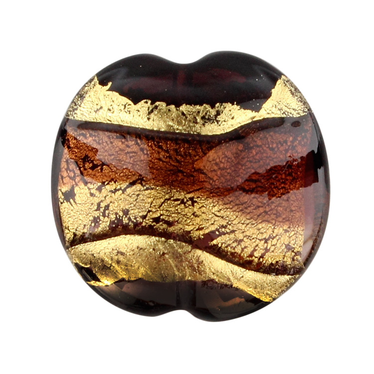 Perla veneziana Ø24 mm, in vetro di Murano. Dai pregiati dettagli dorati e dai toni brillanti. Le due fasce di colore ricoprono interamente la perla, unendosi, al centro, alla foglia oro. Con solo due tonalità ed un particolare prezioso, questa perla è dotata di innumerevoli effetti luce, che donano eleganza e fascino a collane, bracciali oppure orecchini. Scegli le nuances che più ti piacciono e dai valore al tuo outfit con le preziosissime perle in vetro di Murano!