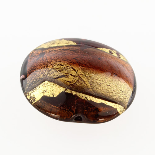 Perla di Murano schissa Sommersa Ø24. Vetro ametista chiaro e scuro, foglia oro. Foro passante.