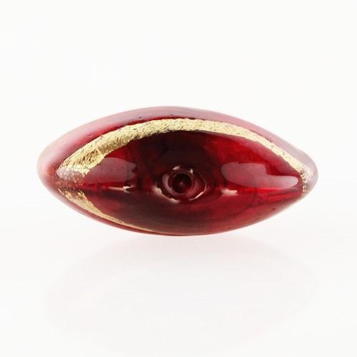 Perla di Murano schissa Sommersa Ø24. Vetro rosso, ametista, foglia oro. Foro passante.