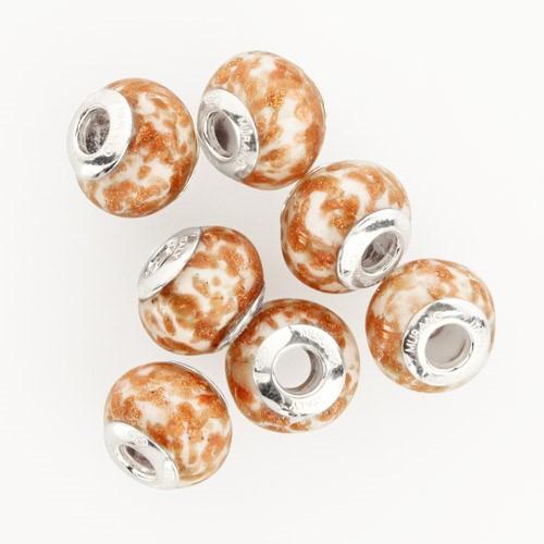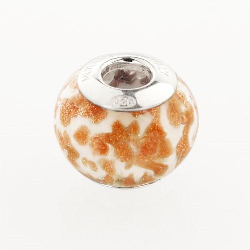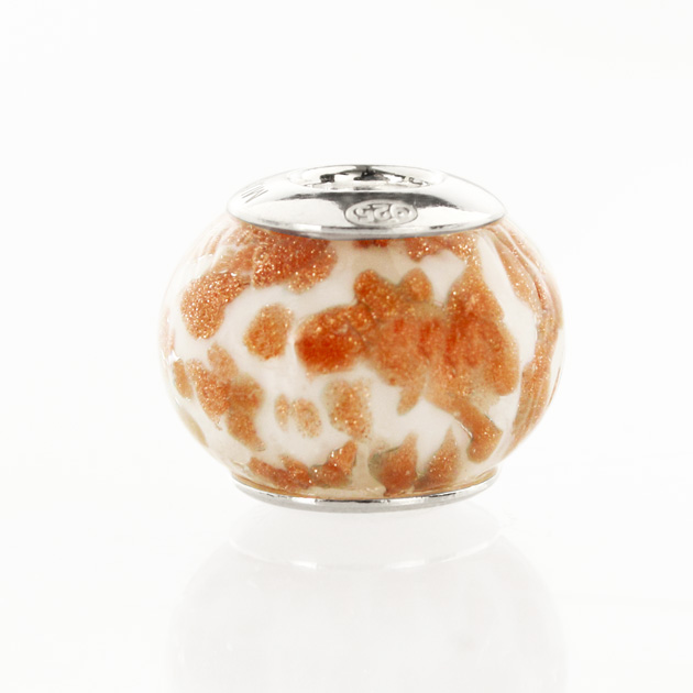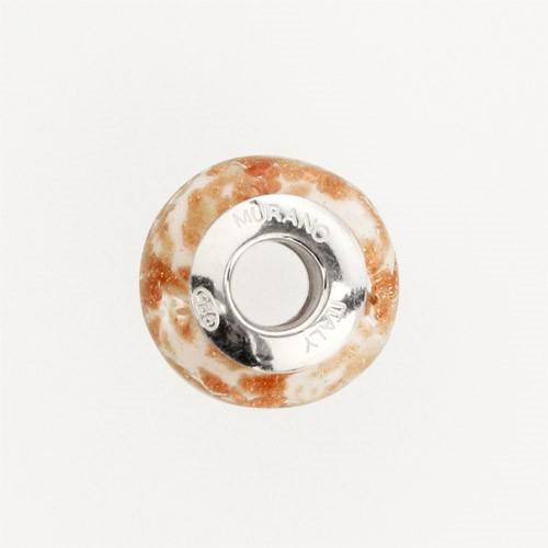 Perla di Murano stile Pandora Sommersa Ø13. Vetro bianco seta e avventurina. Borchia argento 925. Foro passante.