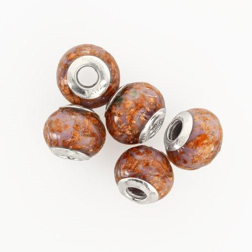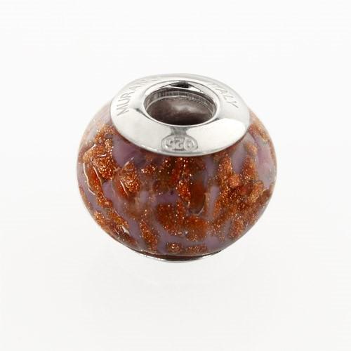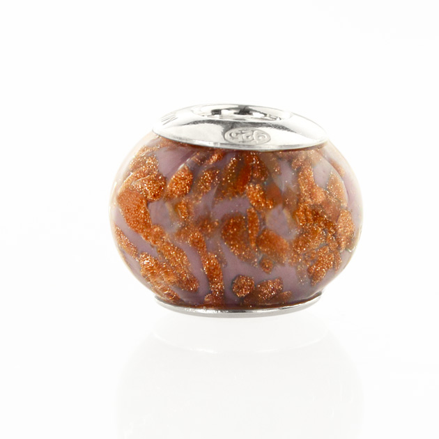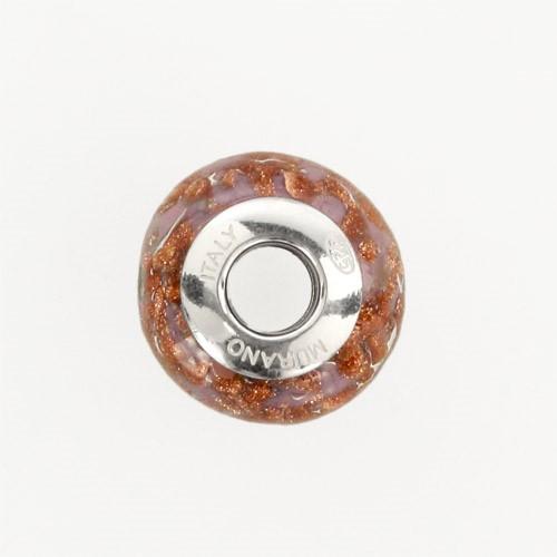 Perla di Murano stile Pandora Sommersa Ø13. Vetro bianco seta, rosa e avventurina. Borchia argento 925. Foro passante.