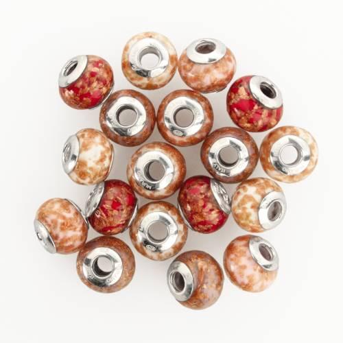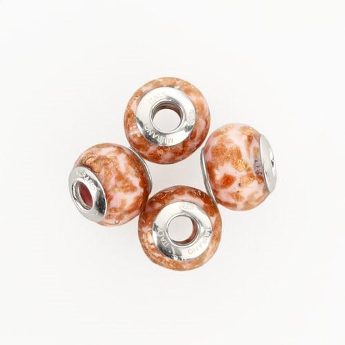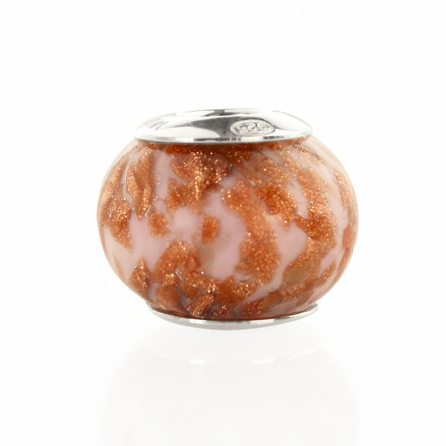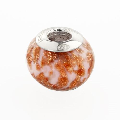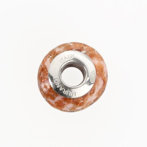Perla di Murano stile Pandora Sommersa Ø13. Vetro bianco seta, rubino e avventurina. Borchia argento 925. Foro passante.