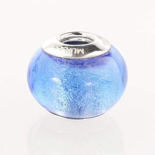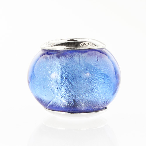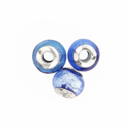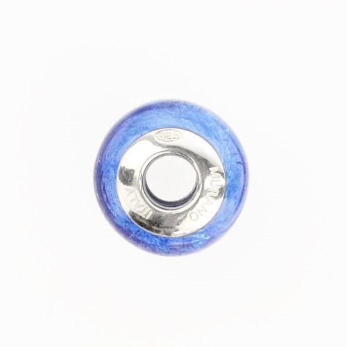 Perla di Murano stile Pandora Sommersa Ø13. Vetro bluino scuro, foglia argento. Borchia argento 925. Foro passante.