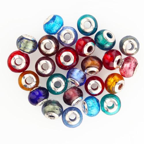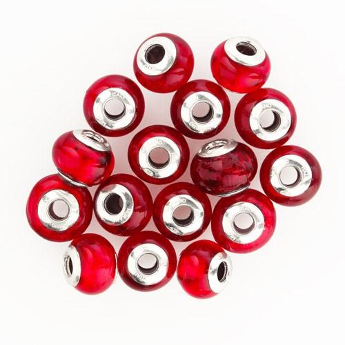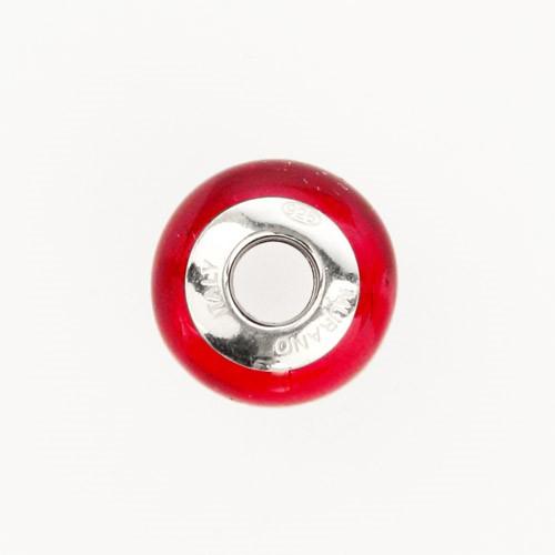 Perla di Murano stile Pandora Sommersa Ø13. Vetro rosso, foglia oro. Borchia argento 925. Foro passante.