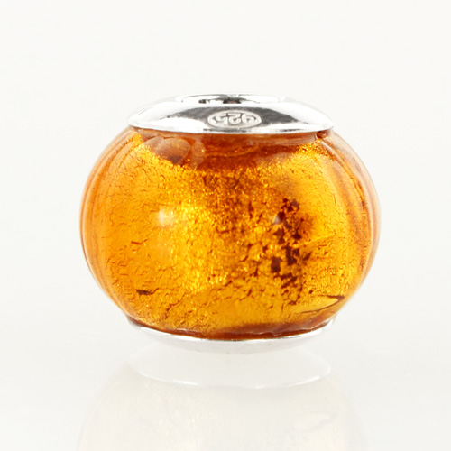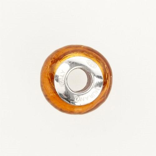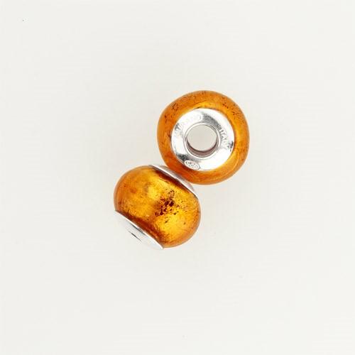 Perla di Murano stile Pandora Sommersa Ø13. Vetro topazio, foglia oro. Borchia argento 925. Foro passante.
