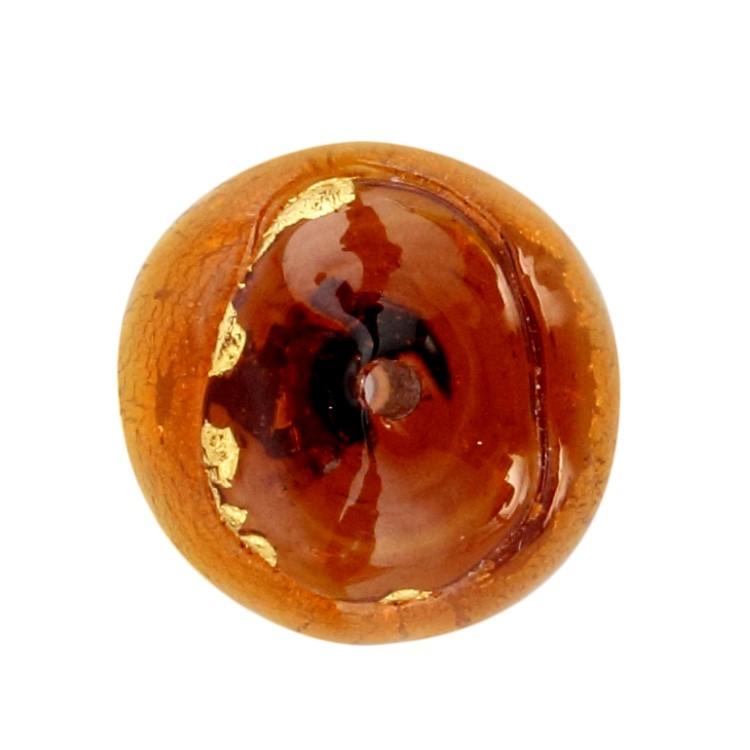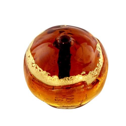 Perla di Murano tonda Sommersa Ø14. Vetro ambra, topazio, foglia oro. Foro passante.