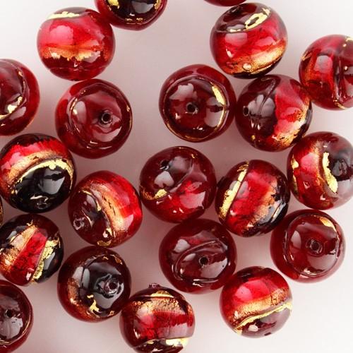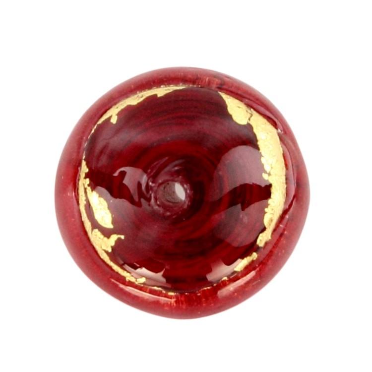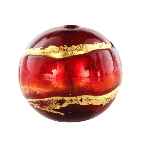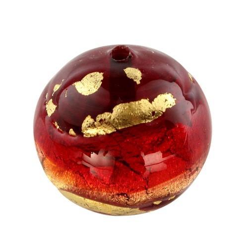 Perla di Murano tonda Sommersa Ø14. Vetro rosso, ametista, foglia oro. Foro passante.