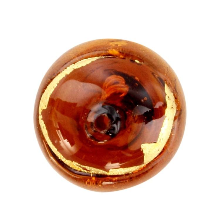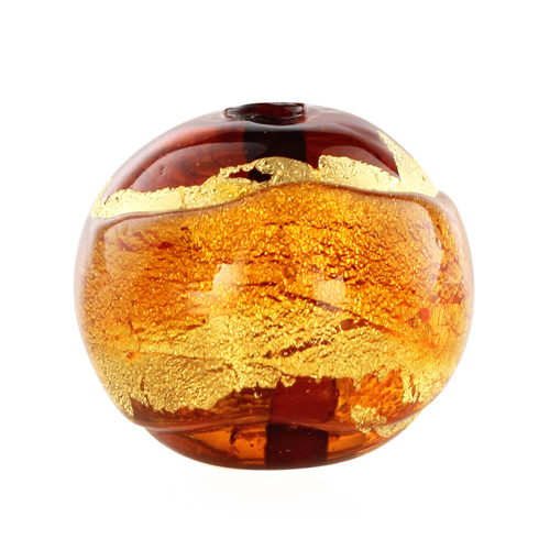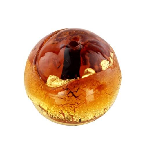 Perla di Murano tonda Sommersa Ø16. Vetro ambra, topazio, foglia oro. Foro passante.