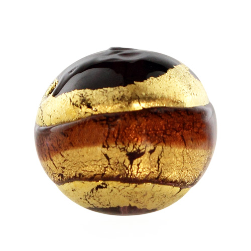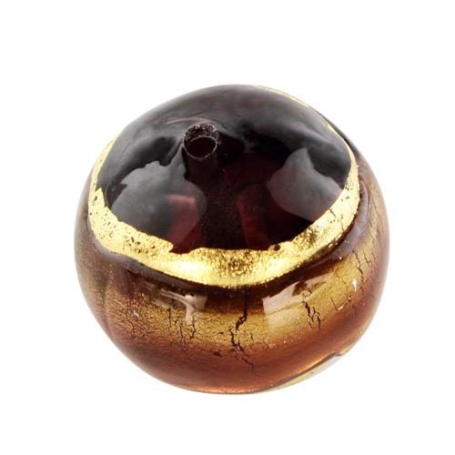 Perla di Murano tonda Sommersa Ø16. Vetro ametista chiaro e scuro, foglia oro. Foro passante.
