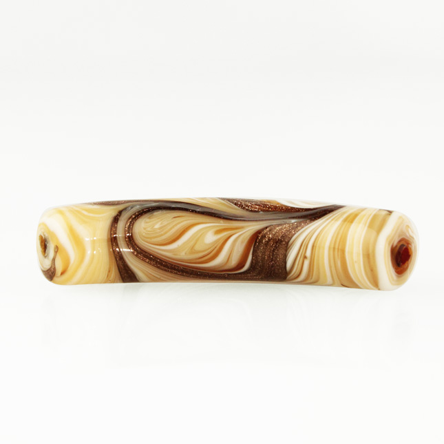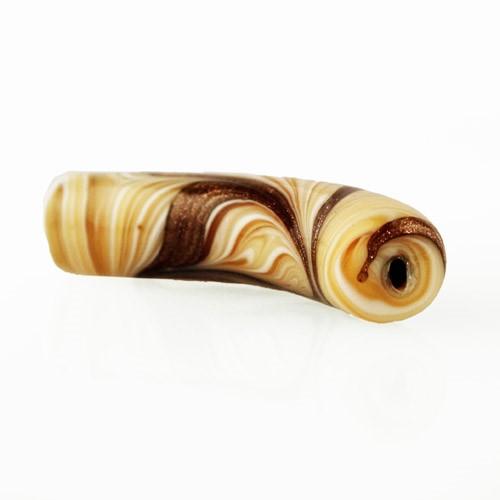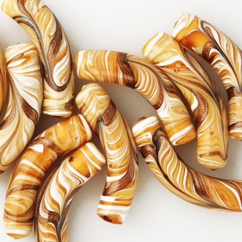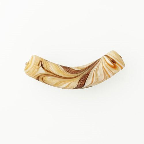 Perla di Murano tubo curvo Fenicio Ø10x48. Vetro bianco, ambra, avorio, topazio e avventurina. Foro passante.