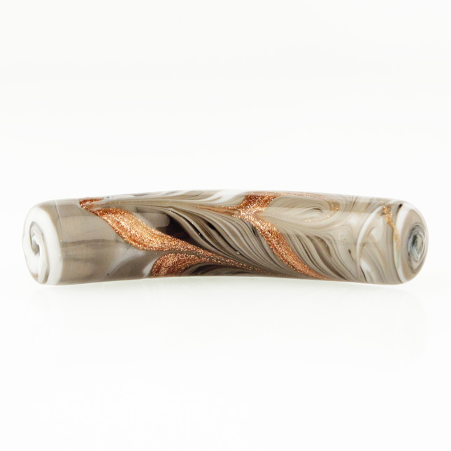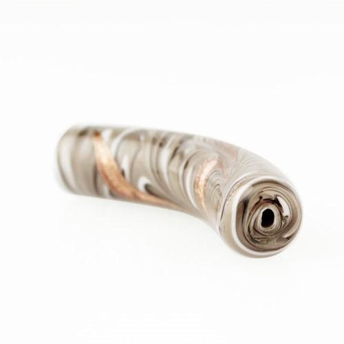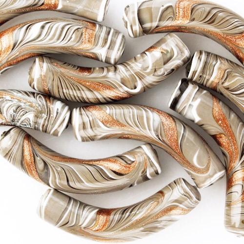 Perla di Murano tubo curvo Fenicio Ø10x48. Vetro bianco, grigio e avventurina. Foro passante.